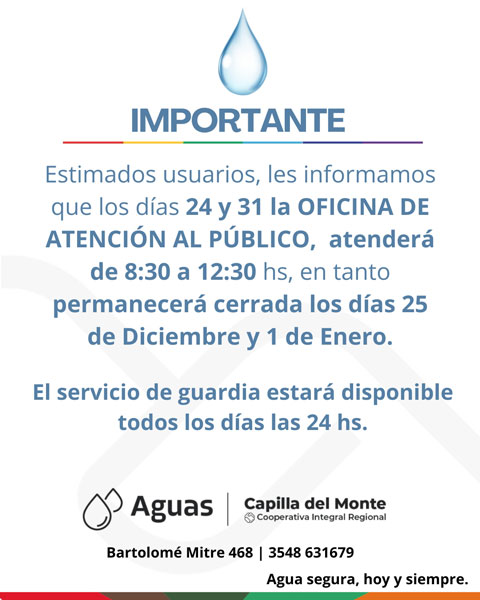 Capilla del Monte, julio de 2025 – La Cooperativa Integral Regional de Servicios Sociales y Públicos, Obras, Producción, Vivienda y Consumo Ltda. expresa su reconocimiento y valoración hacia el tratamiento institucional que el Municipio de Capilla del Monte con el Proyecto de Ordenanza que contempla la concesión de los servicios de agua y cloacas a nuestra organización.